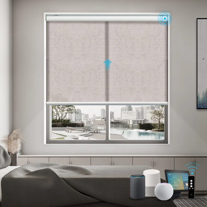 Homnique Motorized Roller Shades 100% Blackout Linen